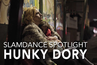 Each year Slamdance hosts the Great Park City Sled-Off. The event is open to all (especially those Sundancers across the street). To date, Slamdance remains undefeated. Awards are given for Most Injured and Best Whip-Out. The 11th Annual Sled-Off was particularly ominous.